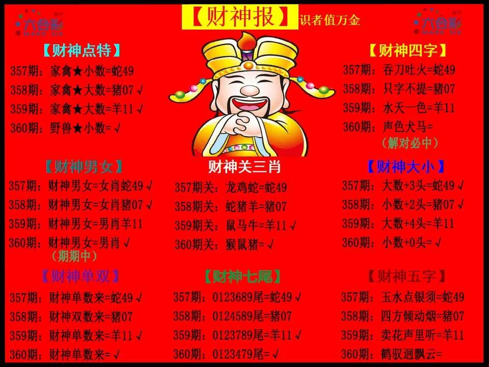 | 359期 | 今期买虎羊猪输尽光 | 开:羊11 |